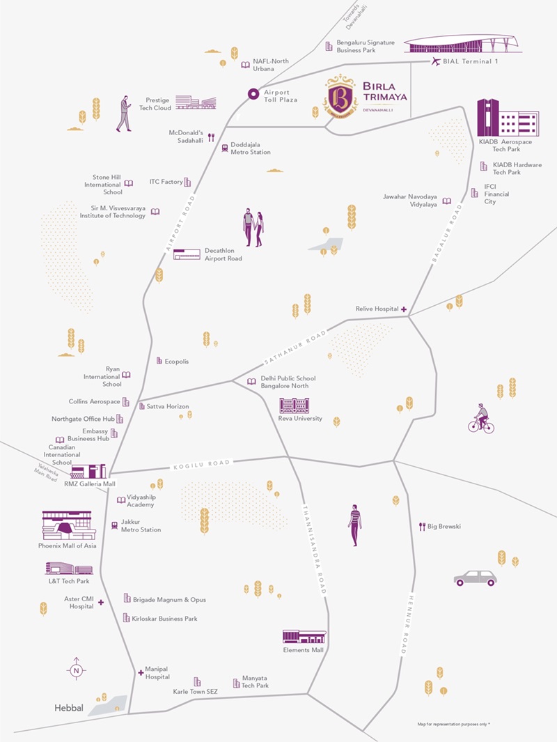 The project is located at Yelahanka in North Bangalore with excellent connectivity to Kempegowda International Airport, Yelahanka Metro Station, and major IT hubs such as Manyata Tech Park.
